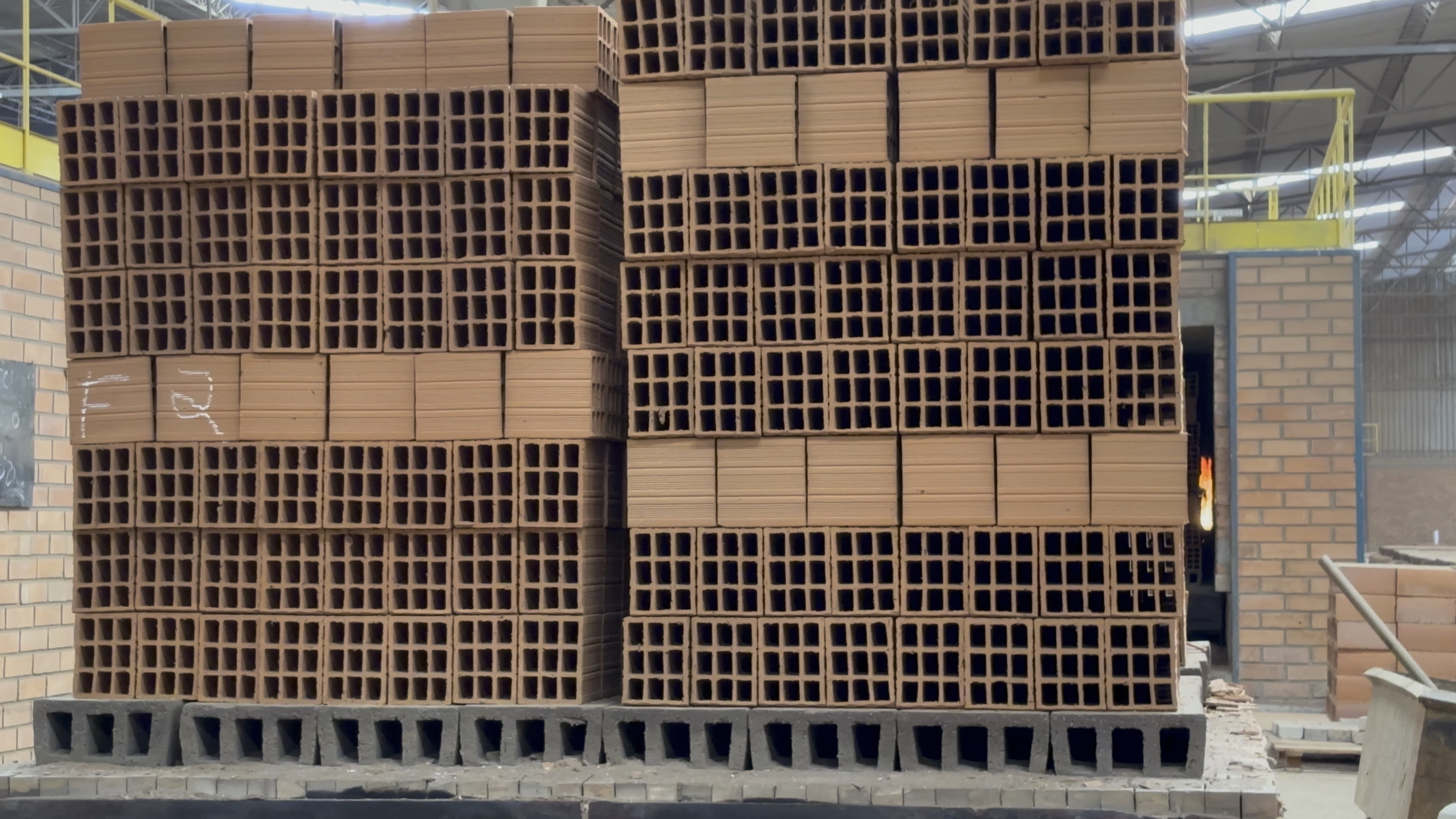 A queima se dá através de fornos túnel contínuo constituídos por trilhos onde as peças podem ficar até 17 horas, chegando a uma temperatura de 950 graus Celsius.